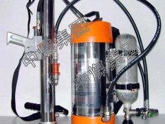 该产品是利用压缩空气瞬间释放产生的极大动能,使空气与液体灭火介质(如清水)在毫秒量级时间内相互冲撞混合,经喷嘴加速后,突然膨胀雾化,瞬时喷射,产生高速度、高密度的超细水雾流,直达火源根部,集吹断、窒息、冷却三种灭火基理于一体,从而达到高效快速灭火的目的。